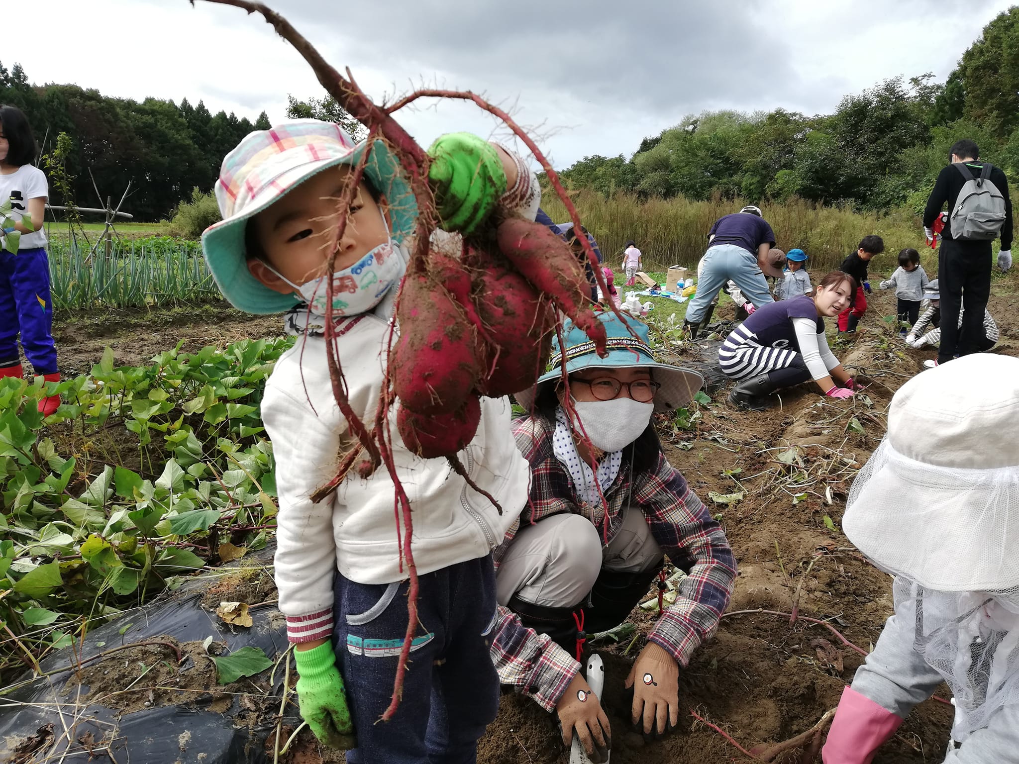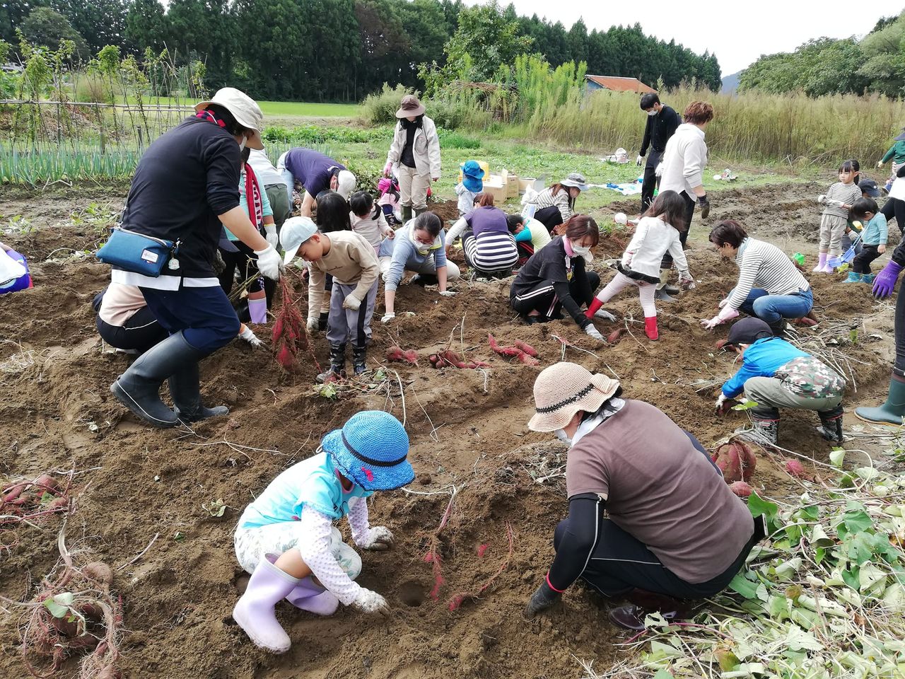 芋掘りは初体験、またはウン十年ぶりの芋掘りです!という保護者の方が多く、親子のワクワクが伝わってきました