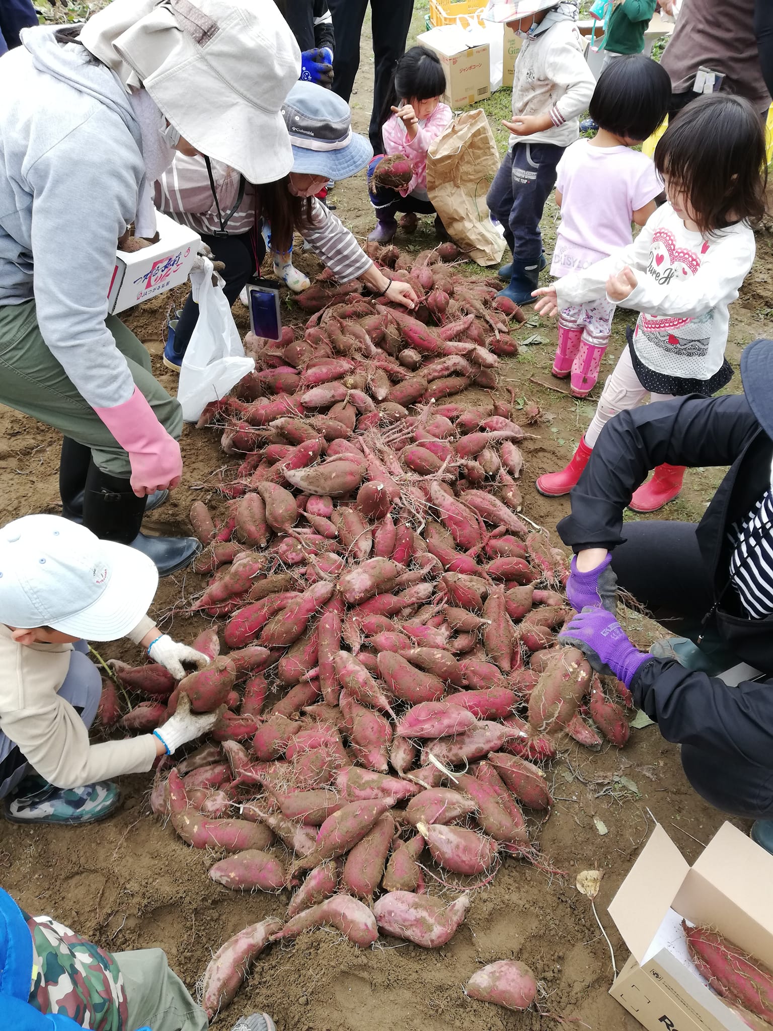今年は雨の影響からか、若干小ぶりの芋で、収穫量も少なめでしたが、それでもみんなお土産芋をたくさんもらって嬉しそうでした