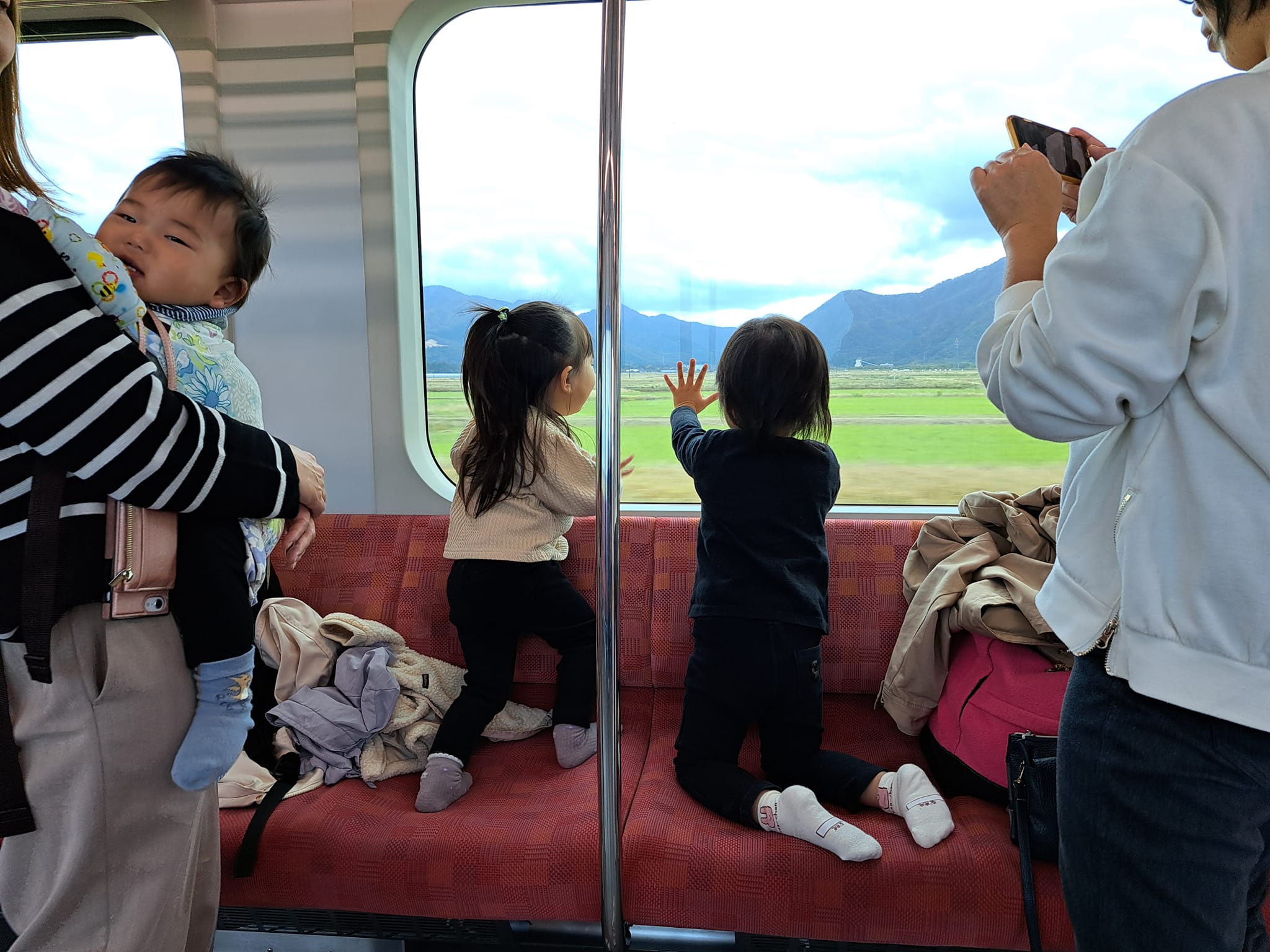 初めて電車に乗る子が多く、最初は緊張してママに抱っこされて、身動ぎしない子もいましたが、少しずつ慣れて、
