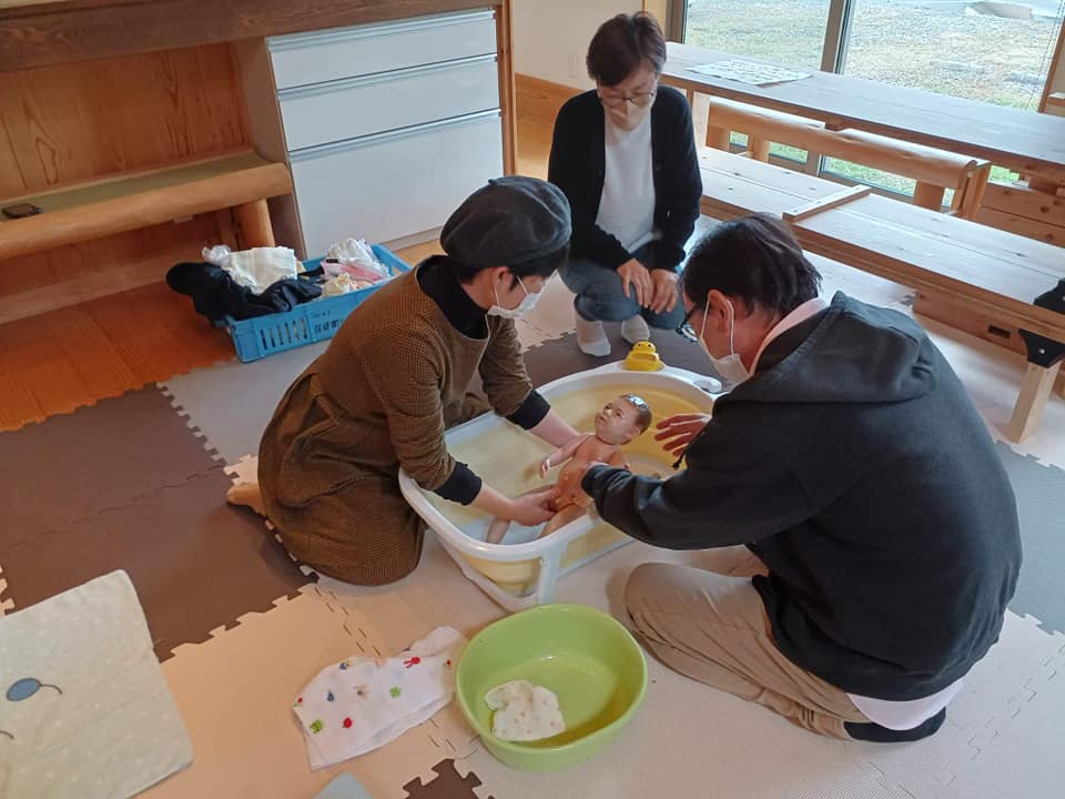 今回は沐浴トレーニングでしたが、夫婦でいい感じでツッコみ合いながら(笑)仲良く連携プレーで赤ちゃんをお風呂に入れていました