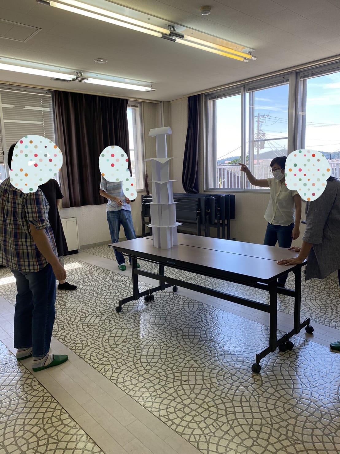 なかなか意見が出せない人には「〇〇さんはどうかな?」など、参加者同士声をかけて意見を求め、出てきた意見を称賛するなど、とてもいい雰囲気で和気あいあいと楽しくタワー作りができました