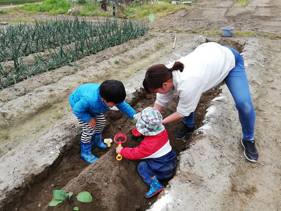 オハナネットのサポーターさん親子が畑に遊びにくるがてら、草取りや、畝作りなどを春から手伝ってくれています。